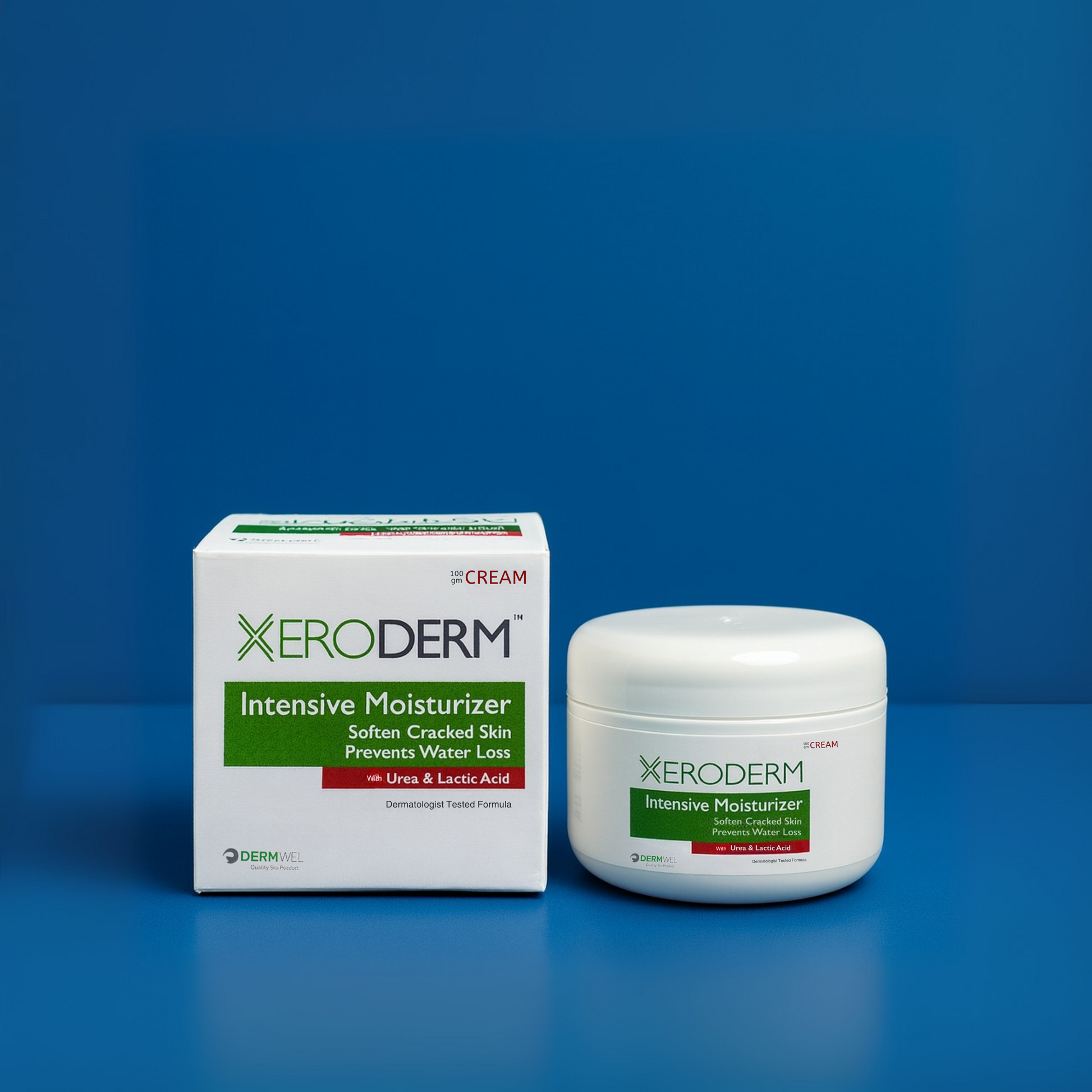 Xeroderm Intensive is a multi-functional, dermatologist-oriented moisturizer, blending strong humectants (urea, glycerin) with barrier-supporting emollients (alcohols, dimethicone) and soothing actives (aloe, panthenol). It targets dry, rough, and irritated skin, offering both hydration and repair without being overly heavy.